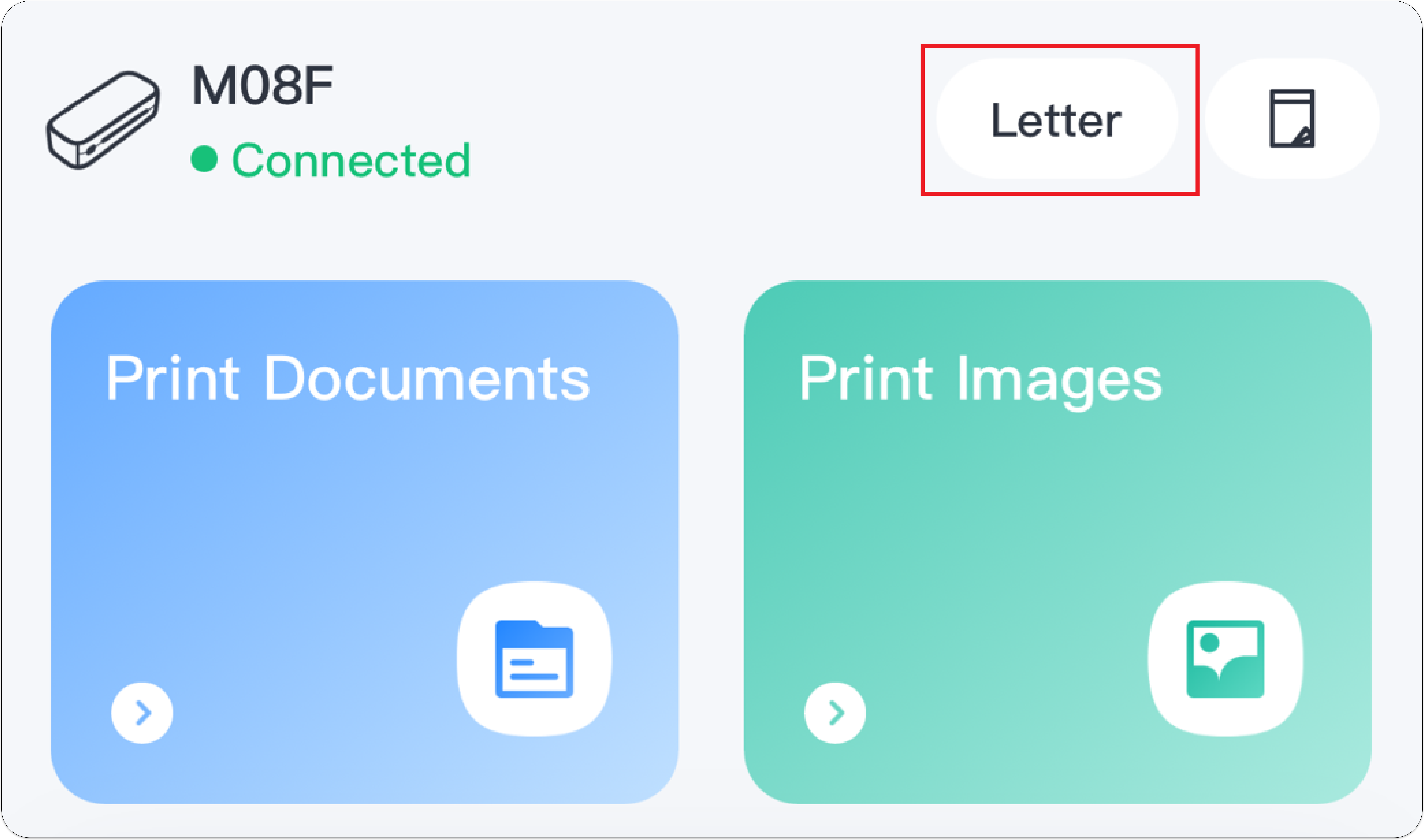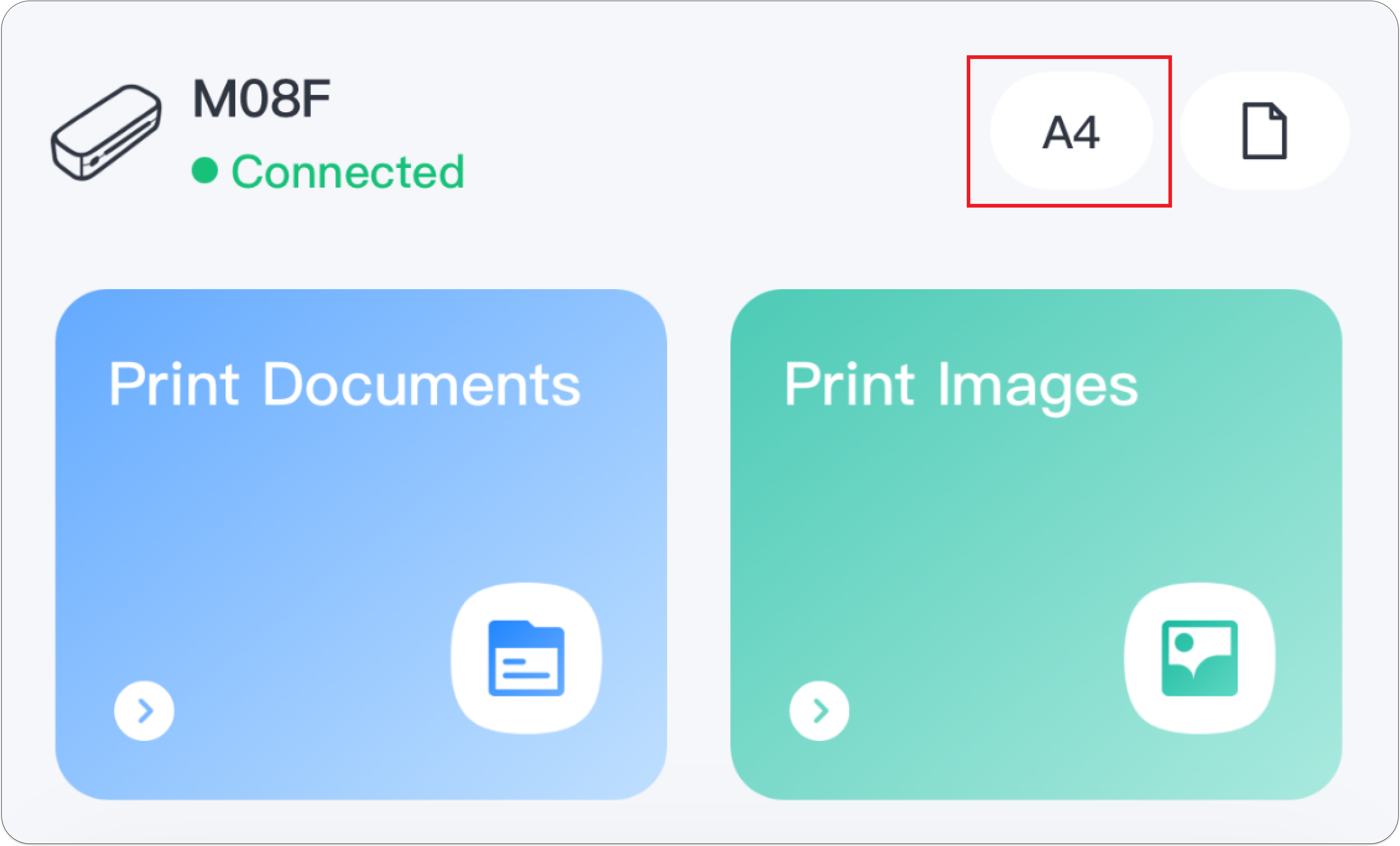 - Go to the app's homepage and check the displayed paper size model.